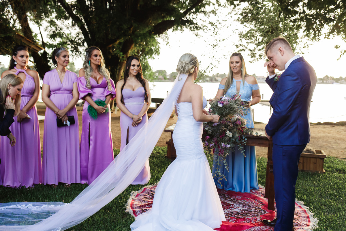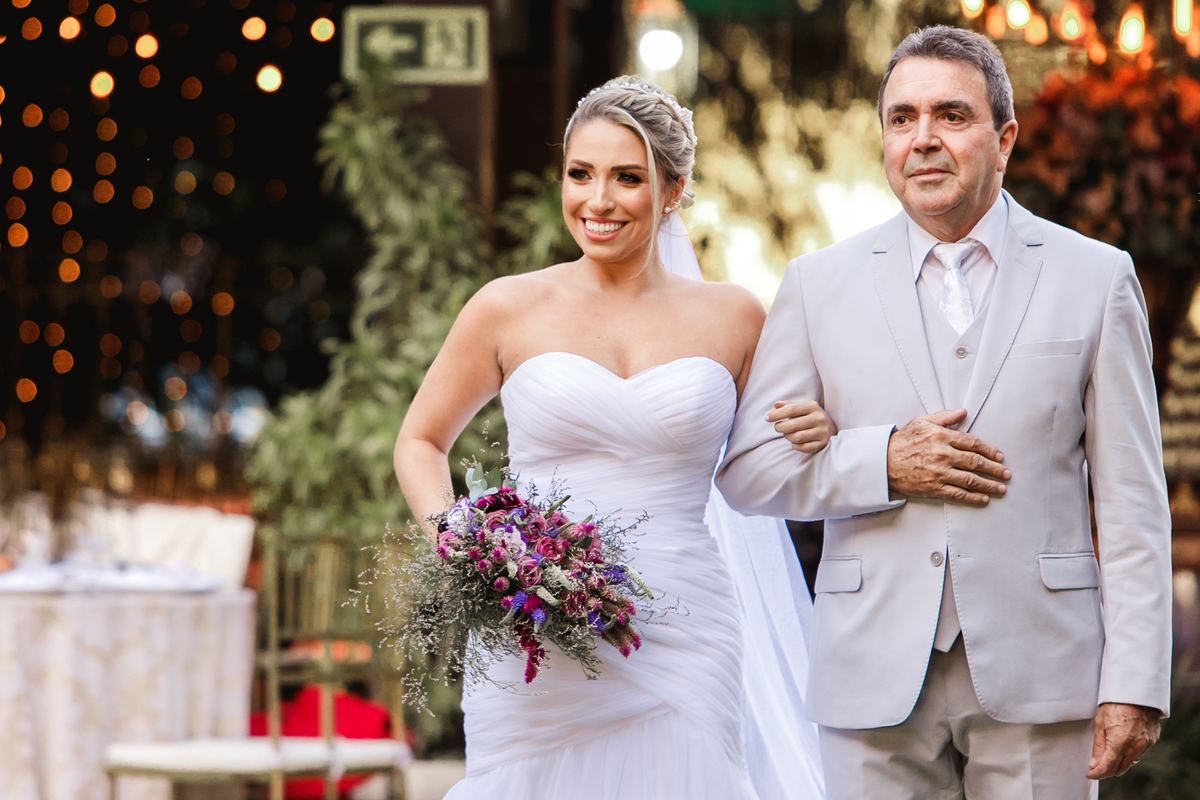 Os olhares apaixonados compartilhados entre os noivos contam uma história que vai além das palavras. Cada sorriso é uma promessa, cada lágrima de felicidade é um testemunho da profundidade desse vínculo especial. O calor do sol sobre eles é como a bênção de uma jornada iluminada pela luz do amor que os guiará nos dias mais ensolarados e também nos momentos mais sombrios.