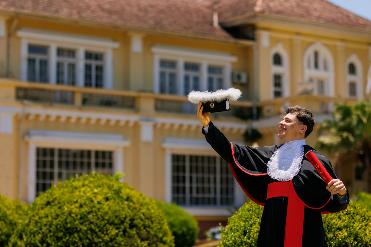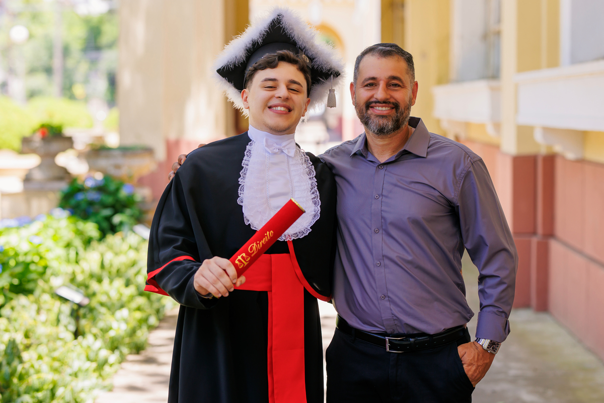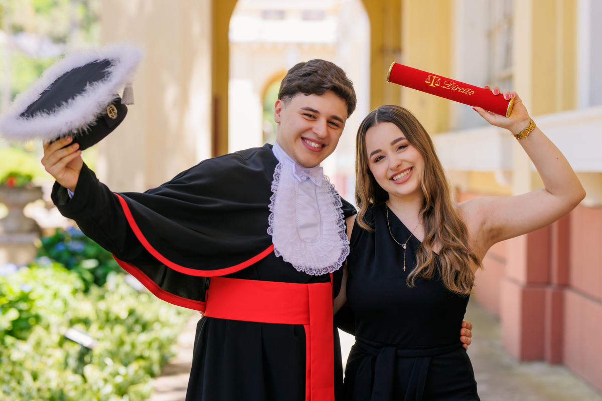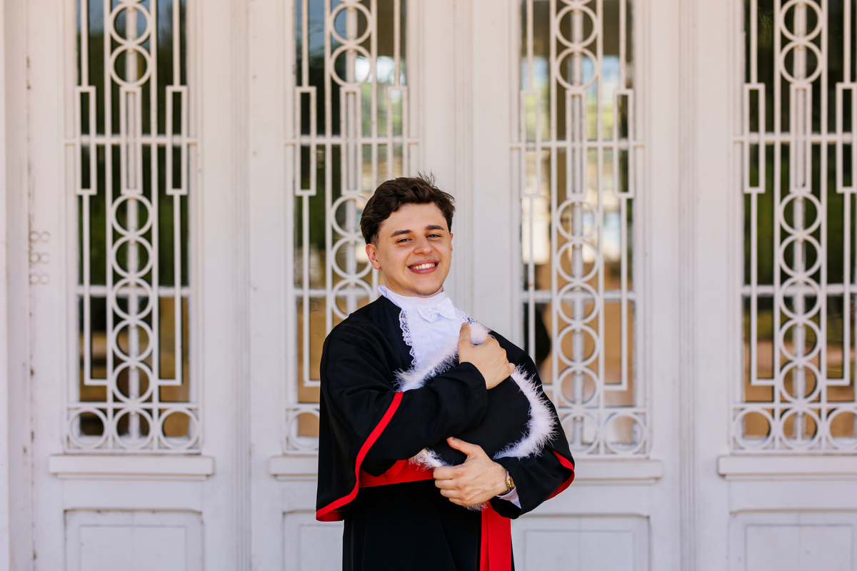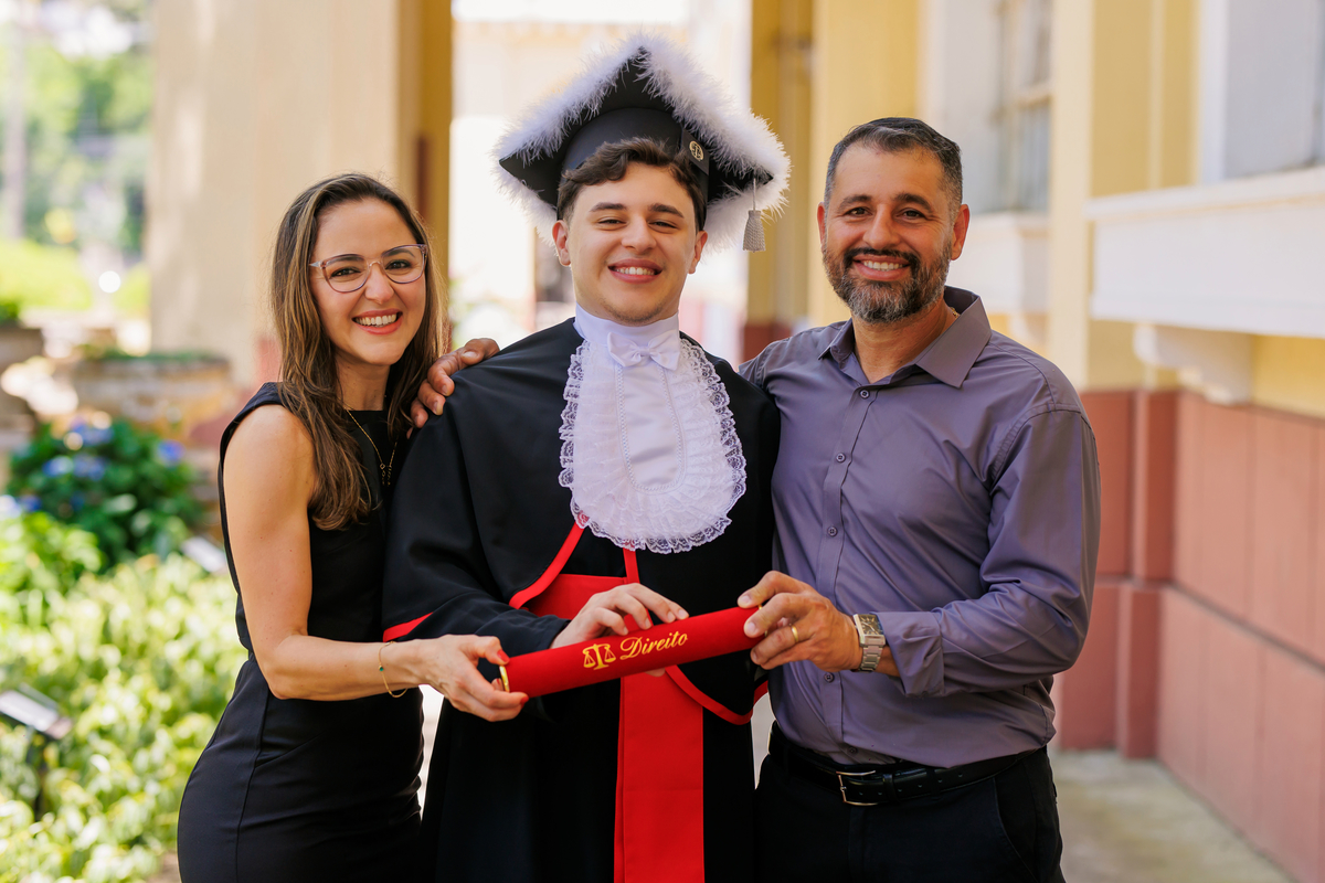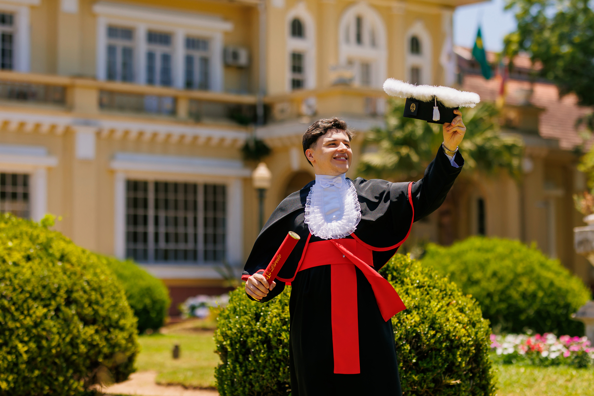 Lucas se formou em Direito e o ensaio de formatura foi realizado no Jardins do DMAE