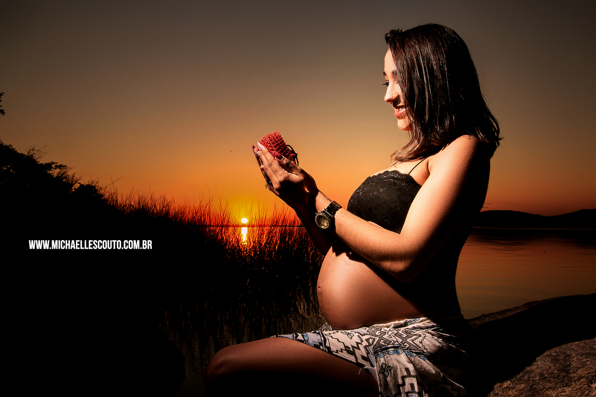 Ensaio durante o Pôr do Sol na prainha de Belém novo em Porto Alegre - RS
